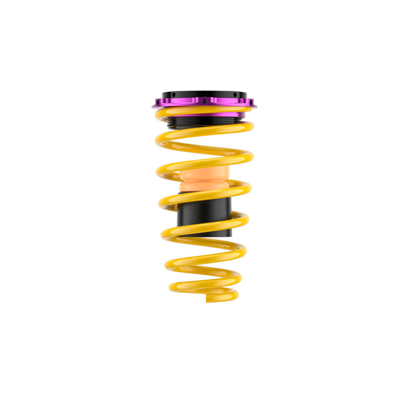KW (H.A.S) Height Adjustable Spring kits are a great alternative to conventional lowering springs. You are no longer stuck with a fixed lowering height. KW H.A.S. systems allow you to adjust the vehicle ride height with the KW height adjuster even after the kit has been installed. Your vehicle not only gets a more dynamic look, but also the steering behavior and response of the standard dampers becomes more agile. All driver assistance systems and comfort features of a factory adaptive or electronic suspension remain operational and work harmoniously with our vehicle specific spring set up. KW uses high-quality springs made of chrome-silicon steel with spring rates designed specifically for each respective OE suspension damper and wheel load. KW's expertise and engineering ensure the spring rates will pair perfectly with the different damper characteristics of your factory adaptive electronic suspension. Along with the use of high quality materials and the included KW ride height Adjustment - mechanisms, our KW H.A.S. kits always includes the vehicle-specific bump stops with dust protection system to protect your factory suspension against wear & tear caused by road grime and debris. Similar to a coilover suspension, the KW H.A.S kit allow a continuous adjustable ride height within a tested range, something not possible with conventional lowering springs. The dust protection elements and spring perches included in the delivery, when applicable, are always adjusted to the maximum technically possible lowering, typically limited by the factory dampers. With KW height adjustable springs, a sporty and harmonious driving behavior can be achieved without the driving dynamics of performance-oriented vehicles suffering. As with all KW suspension products our engineers develop vehicle specific parameters and spring specifications which undergo comprehensive testing on the Nurburgring Nordschleife and in our KW 7-post Driving Dynamic Test Center.